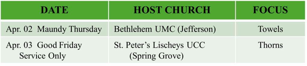 Host church will offer a simple soup supper at 6 pm on Maundy Thursday with worship at 7 pm