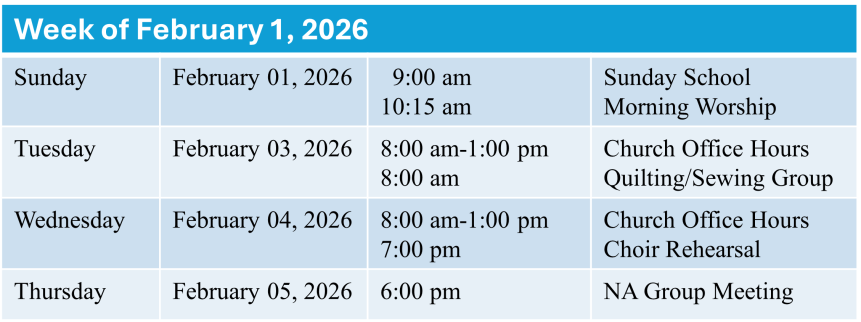 Assisting in Worship February 01, 2026 – Head Usher: Bryan Myers